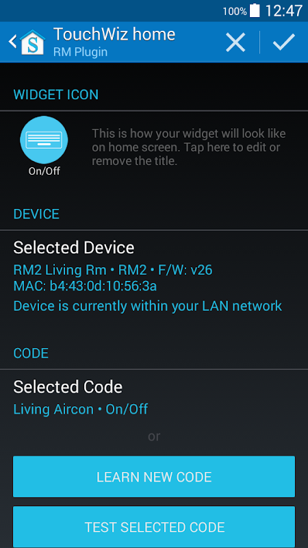 This let you add a widget/button on your home screen to directly control Broadlink RM at a few simple clicks.