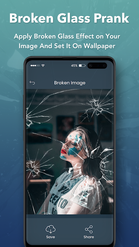 - Destroy your phone screen by other effects such as fire screen and electric screen.