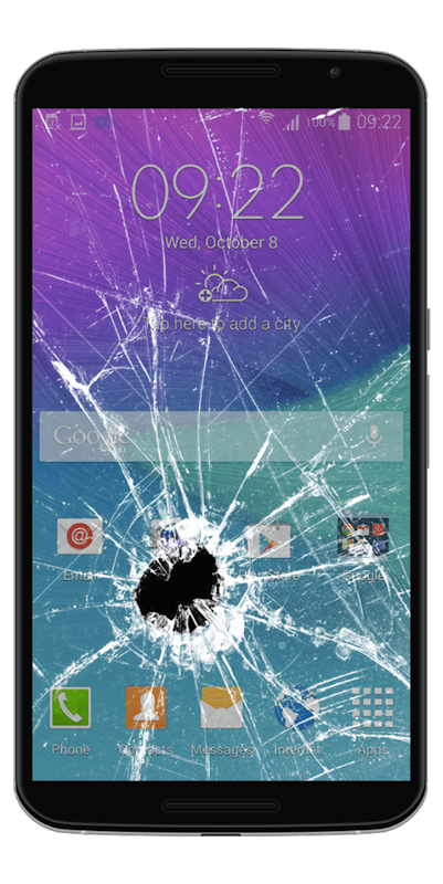 Simulated cracked and broken screen to prank friends.