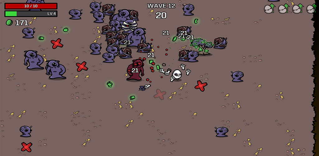 ✅ Collect materials to gain experience and get items from the shop between waves of enemies.