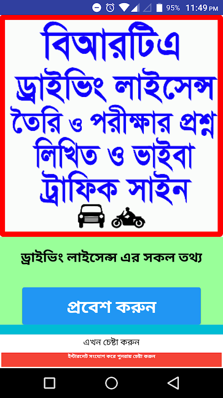 This is not a government app, this is an education purpose app, This app does not provide any government service, this app only share information collected from the office, The Driving license Exam Syllabus, the study materials, the necessary information about documents to submit for the license preparation, the exam type, written, viva and practical.
