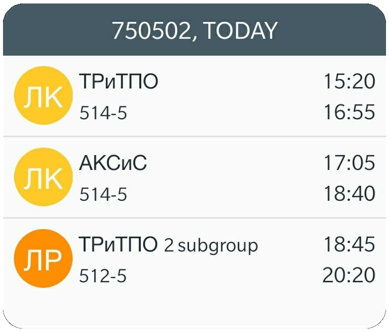▸ Always actual schedules of groups and employees. Also allow to check schedule of exams.