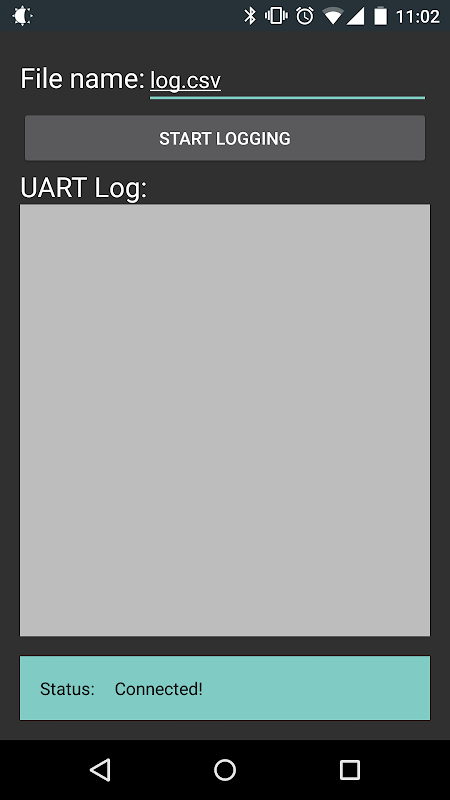 * Receive UART communications and log them to a file on your device's SD card (in the Documents folder).
