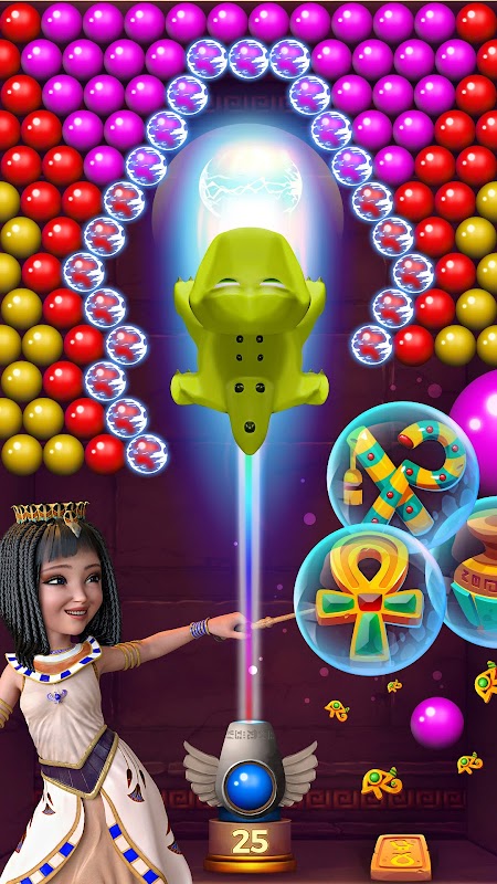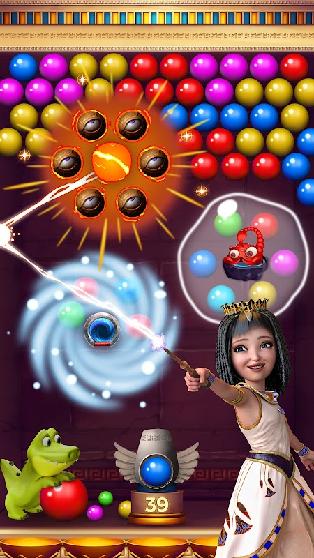 Bubble Ancient: Pyramid Pop – An adventure in ancient Egypt Pyramid to pop bubbles with brave princess Akila and her friend Sobki. Your missions are shooting bubbles to get ancient Egypt Amulet and Ankh, rescue myth cats, defeat the evil mummy, protect the Khepri and sacred temple, and remove all obstacles to win the level.