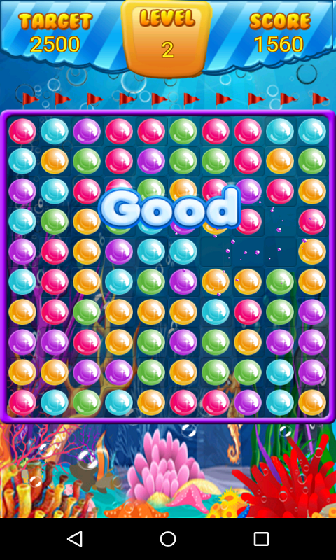 • Try to pop big groups of same colour bubble and achieve target points in order to win.