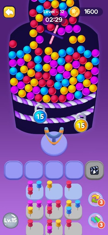 Aim & Shoot: Drag the color pin to fire bubbles.