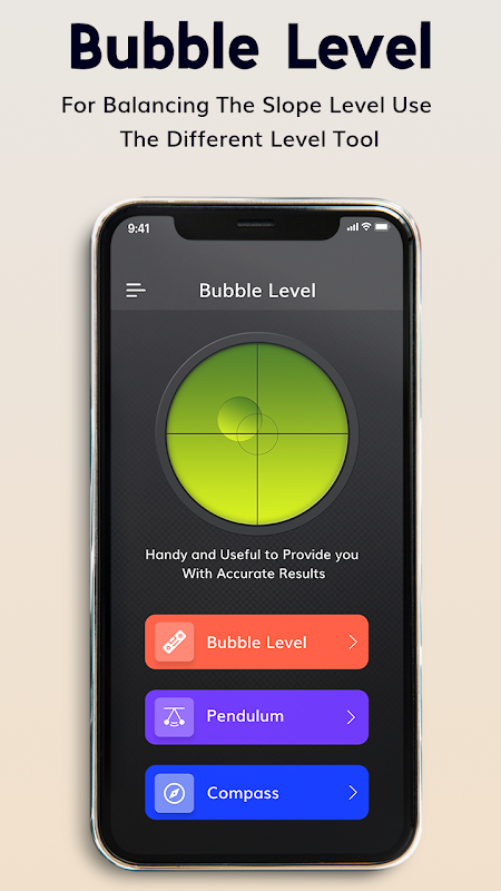 This Bubble Level Accuracy : Bubble Spirit Level app provides not just spirit level, but also a straight ruler and 2D ruler, making the measurement more comprehensive. The tools in this Bubble Ruler is user-friendly. In the ruler functions, you can change the unit of the measurement, and in the bubble level function, you can lock the interface and change the bubble level mode.