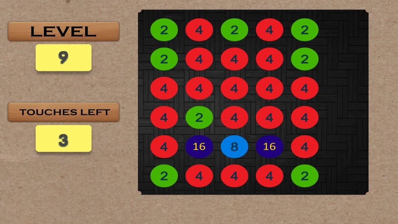 1. Tab the bubbles to blast, there are 2,4,8 and 16 number bubbles.