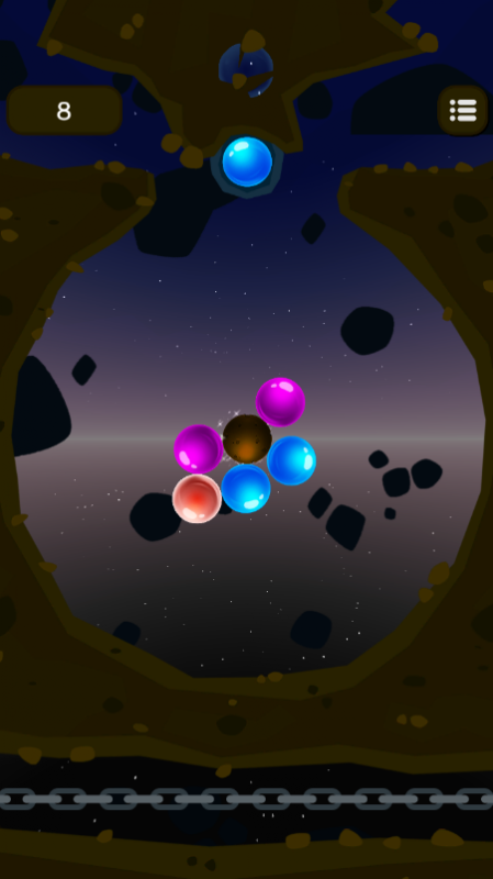 Control the chain to rotate the planet. Match three bubble on top of the planet.