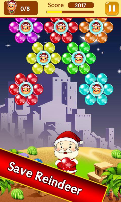 - Pop bubbles to save Reindeer.