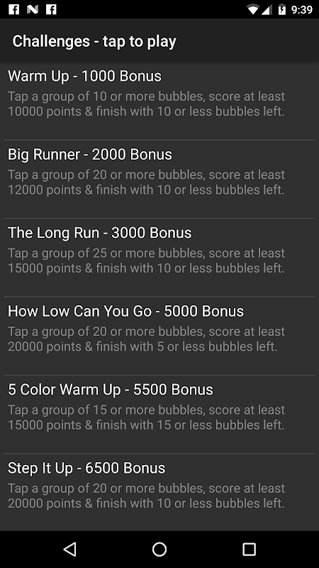 Play either Standard, Color or Challenge mode & use the Bonus Bubble to get you out of a sticky situation. Every 10 games you play earns you a new Bonus Bubble or you can buy packs of 10, 15 or 20 Bonus Bubbles through in-app purchasing.
