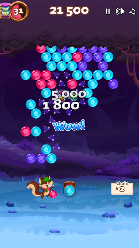 Although it may look adorably cute, Bubble Woods is a thrilling high score game experience. In 60 second rounds your only goal is to reach the highest score possible. Shoot the biggest clusters, use super effective power-ups, play strategically and be quick. This is not your average bubble shooter, this is Bubble Woods!