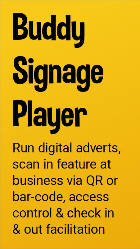Run digital adverts, scan in feature at business via QR or bar-code, access control & check in & out facilitation.