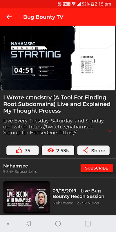 bug bountytvis the first content aggregatorallowingyou to learn about hunting for web Security via channelswithvideo content.