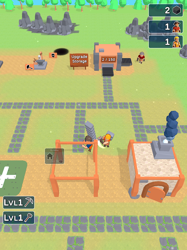 Be the hero of this game, hire workers, dig mines, build buildings.