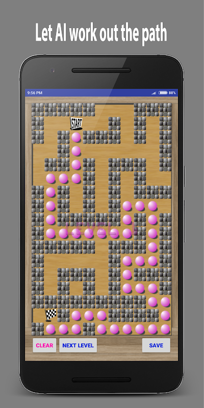 After that you can play the maze by driving the ball from the start to the goal - become a ball maze game, or press AI button to see how AI solve your problem.