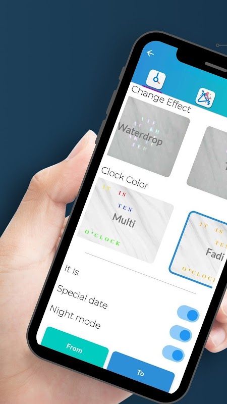 Customize your clock with effects, colors, dialects, and special modes!