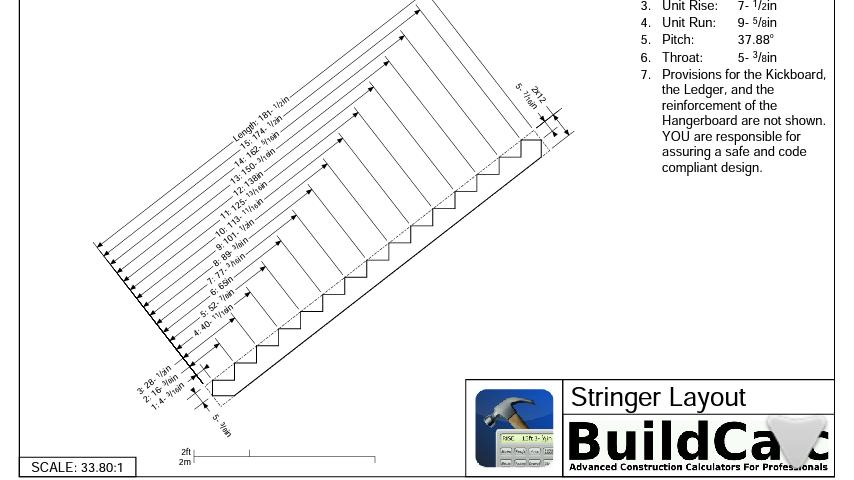 • Advanced Stair function: Stair layouts for professional results - including dimensioned drawings of your Stringer, Stringer Installation, and Finished Staircase. And you can email a PDF of these drawings right from BuildCalc so you can print them or share them.