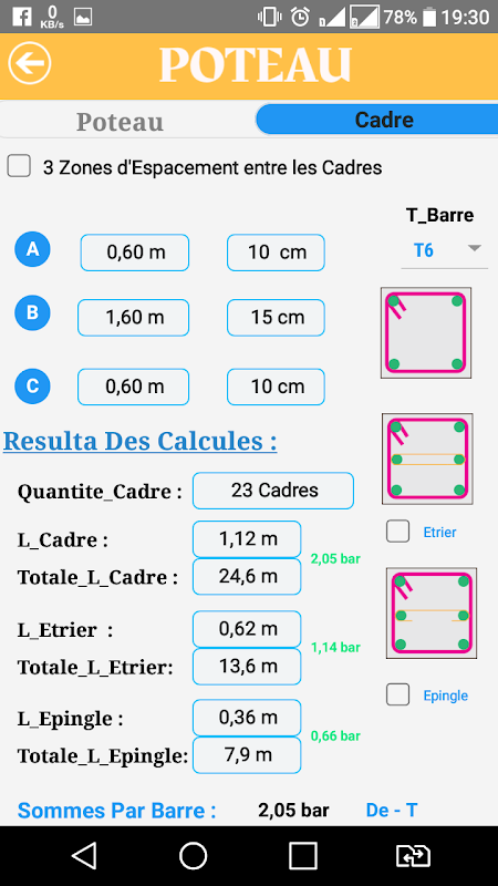 - Calculate the number of reinforcement bars of a post and the necessary length.