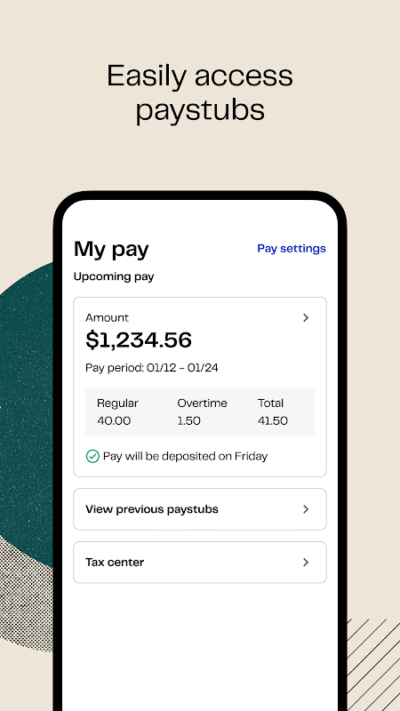 * Pay: Easily access your paycheck information in the Buildforce app. Maintain your W-2 and direct deposit account information all in one spot, eliminating the need for multiple log-ins and passwords to access your pay information.