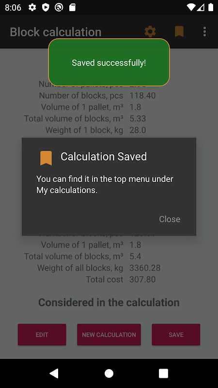 Save your calculation in the memory of your smartphone. Share your calculation on social networks, messengers or save in your cloud.