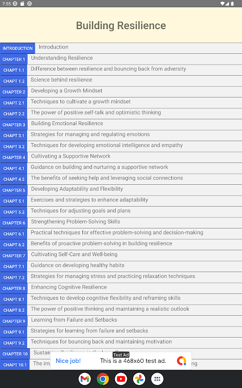 Whether you're facing personal hardships or navigating professional challenges, our "Building Resilience" app will equip you with the tools and knowledge you need to overcome adversity and thrive in life. Start your journey towards a resilient and successful future today! Don't wait any longer!