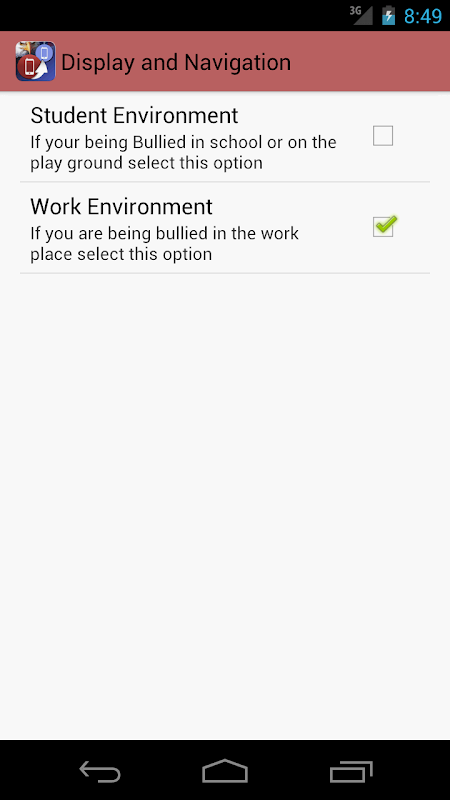 This anti-bullying app is designed to be used by anyone who is being targeted and bullied in the playground or in the Workplace. A special "settings" option has been added to the menu selection. All you need to do is check off the environment where you are being Bullied, The app will use that selection to generate an appropriate message to be sent out. This app is also useful for someone who is targeted on the internet (cyber bullies) and if you, the target, are having thoughts of harming yourself or the bully.
