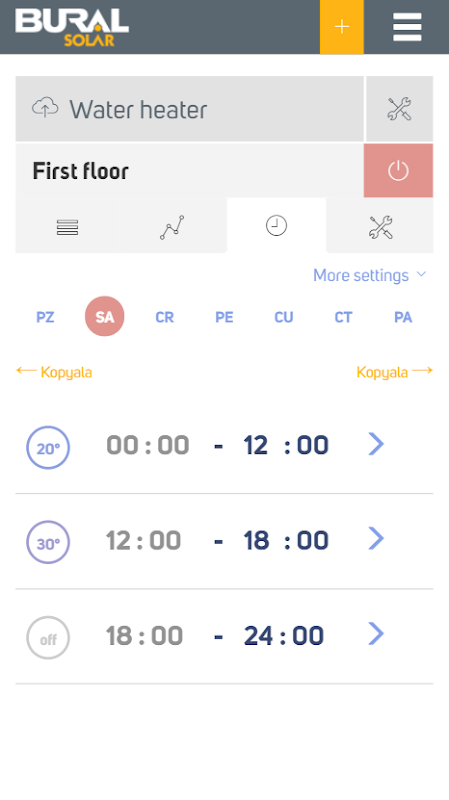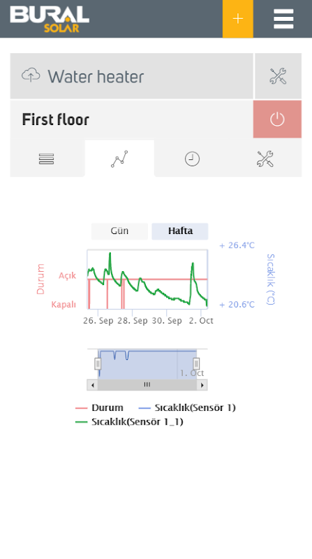 Bural Connect controls electrical support of your solar water heater in your home. You monitor its work via Internet through your PC or smartphone. With Bural Connect you can configure your solar water heater, set individual schedules for it and monitor the temperature in real time. Find out more at: