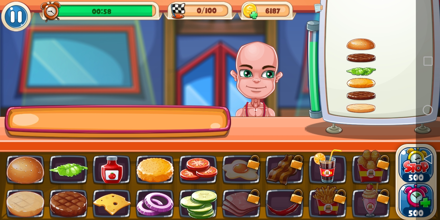 • Time Mode - Race against the clock to cook the most burgers!