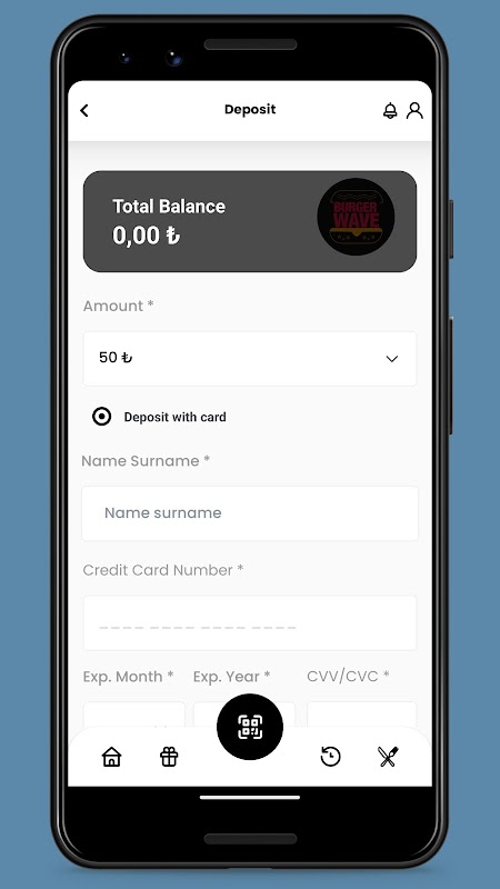 You can use the balance that you will safely load into your wallet with your credit card at Burger Wave whenever you want.
