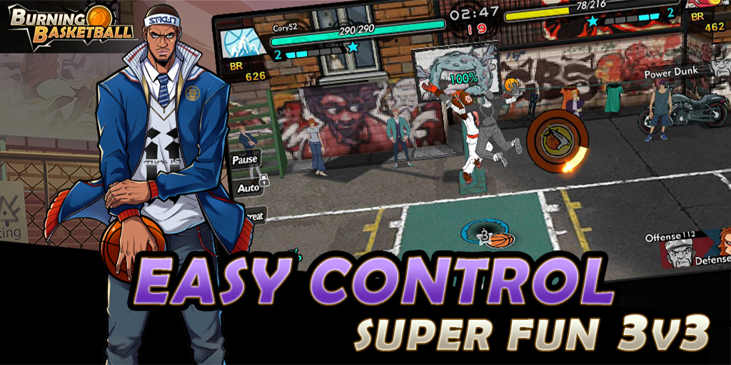 “Burning Basketball” is a competitive basketball mobile game. Classic 3 on 3 half court game or challenge your friend in a 1 on 1 match among other various game modes. Customize your players’ skills and accessories to make them stronger and show off your unique style. Unlock fancy basketball movements that you ever see in a typical basketball game!