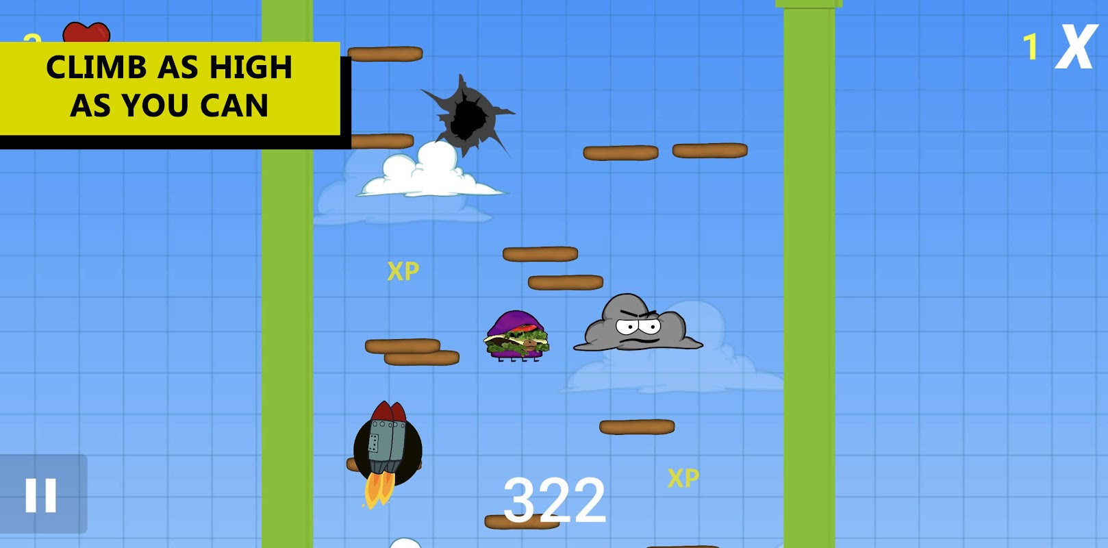 Climb as high as you can as Burtle and score multiplier point as Van Clam!