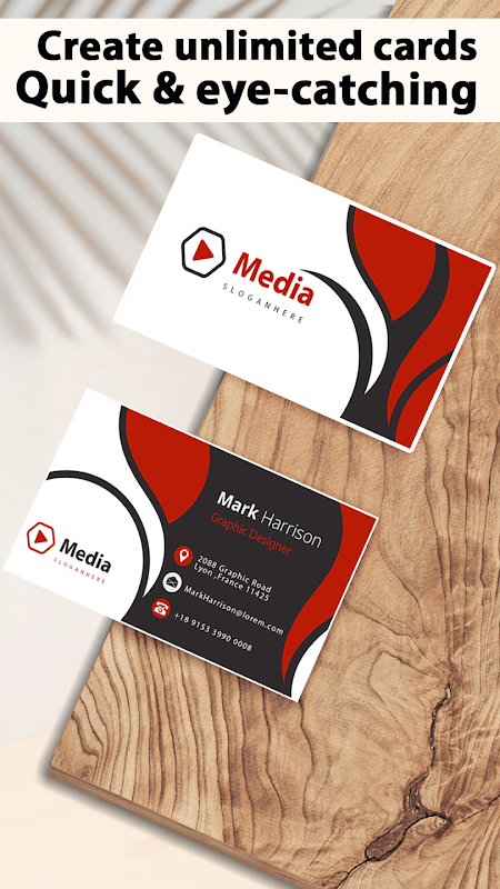 Visiting card maker app has 100 creative designs. The graphic designs made with business card designer looks like visiting card created by professional graphic designer.