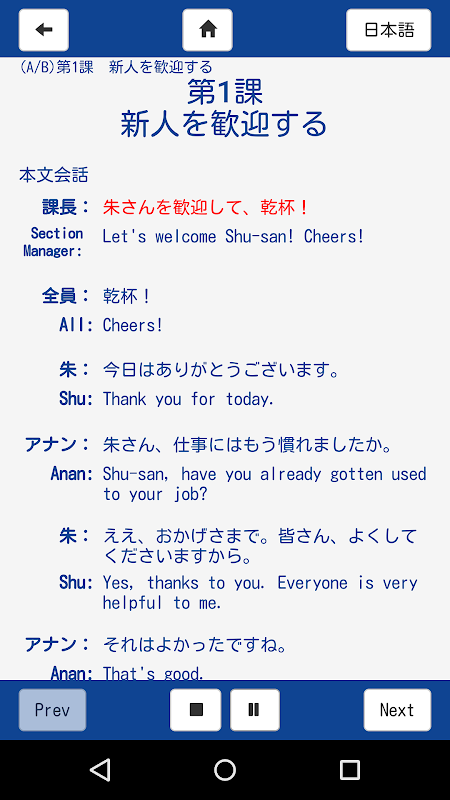 To be most effective, this App should be used in conjunction with the book “Practical Japanese Conversation for Business People – Intermediate 1.” However, it can be used even without the book.