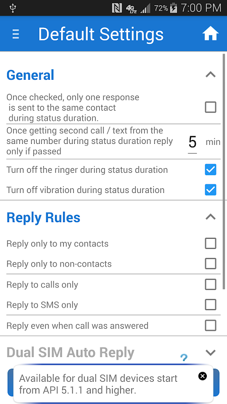 ✔ Auto reply to calls and sms only of non-contacts