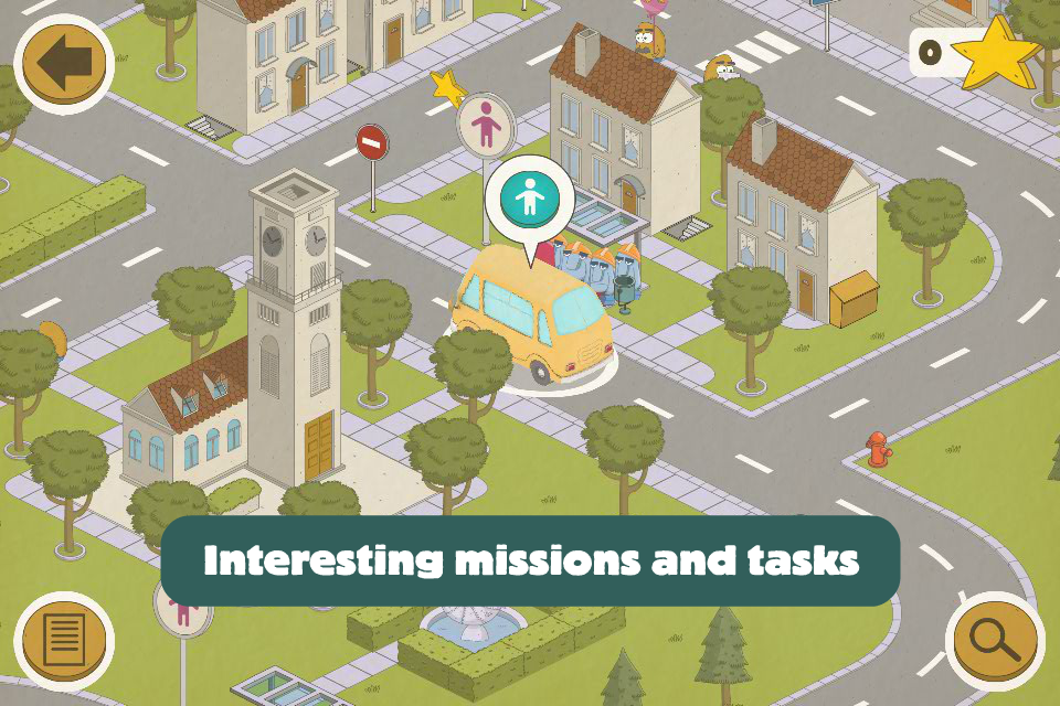 In this educational game for pre-schoolers (4+), a player has to drive the bus, explore city map, follow traffic rules and find the best route to accomplish the mission. The more you play, the more stars you earn - the cooler bus you can get!