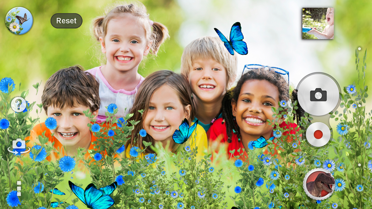 With the Butterfly theme you can create pictures and movies in a garden-like setting and see butterflies flying, and much more.