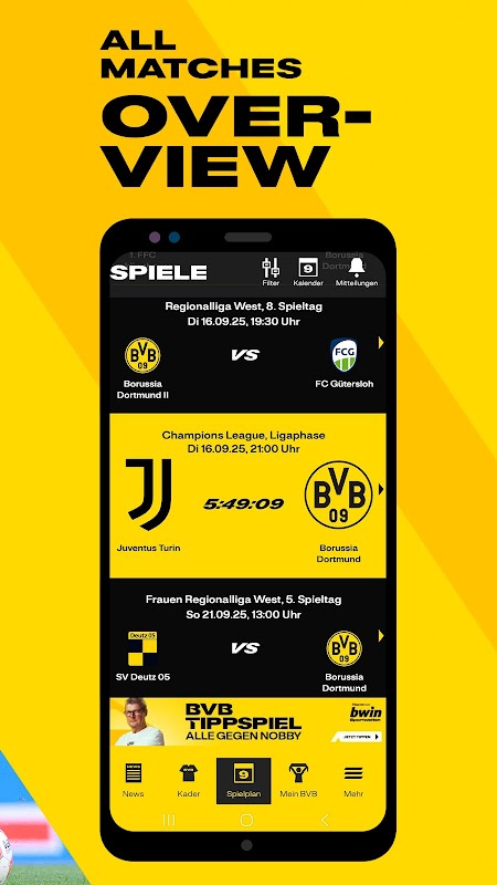 BVB matchday companion: news, teams, live ticker, statistics and netradio.