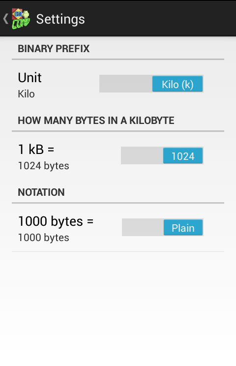 BitConv allows you to select your preferred notation: Kilo / Kibi, Mega / Mebi, Giga / Gibi, Tera / Tebi, Peta / Pebi, Exa / Exbi, Zetta / Zebi, Yotta / Yobi