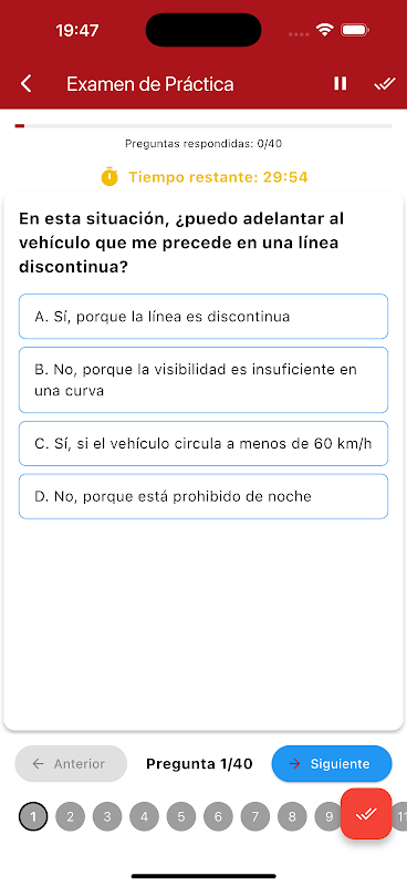 - Realistic exam mode: Simulate exams with 30 questions and limited time, just like the real test