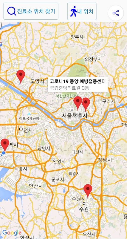 지역 별로 위치한 예방접종센터 위치를 구글 지도를 통해 쉽게 찾아가세요!