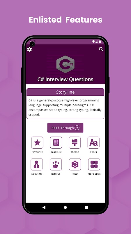 • The C# interview questions app has a very user-friendly interface. You just have to open the app and select any topic you want to learn about, and all the answers will be displayed.