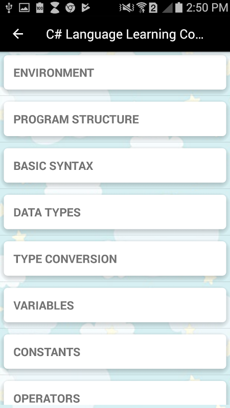 When you go through contents of this application you will be able to understand the basics related to C#. People facing difficulty in understanding C# will definitely appreciate the content of this application as it will guide you in your development process. Once you master the contents of this application , you will come out as a winner in understanding the basics of C# language.