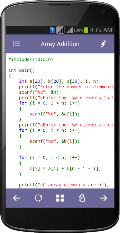 -- It has 300+ C Programming examples with output,indentation and Syntax Highlighting.