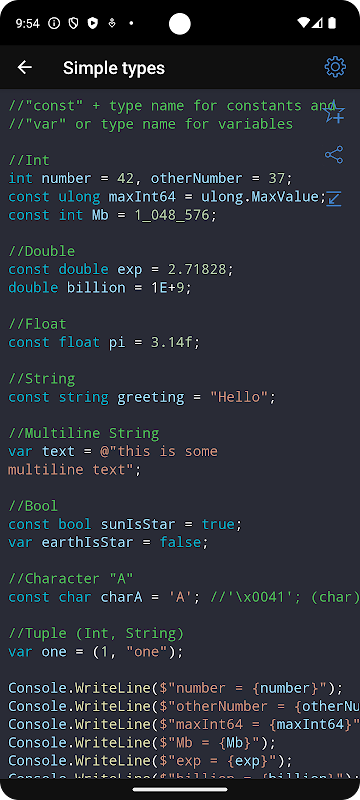 • All examples in the application are available offline.