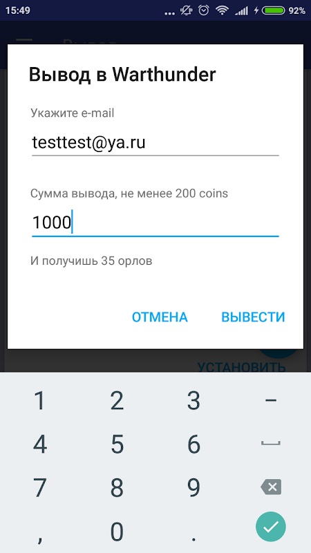 Просто укажи свой email и мы переведем монеты в орлы. Минимальная сумма для вывода - 200 монет, за это ты получить 7 орлов.