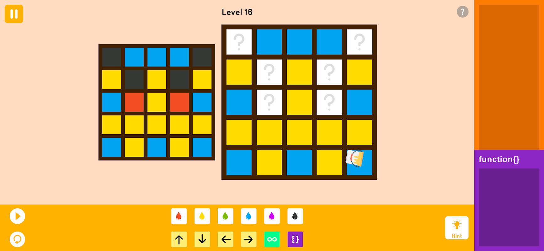 ● Advanced is the final and most challenging type of game in which all blocks except coordinate blocks are used. Kids must apply what they have learned in previous modes to complete advanced levels.