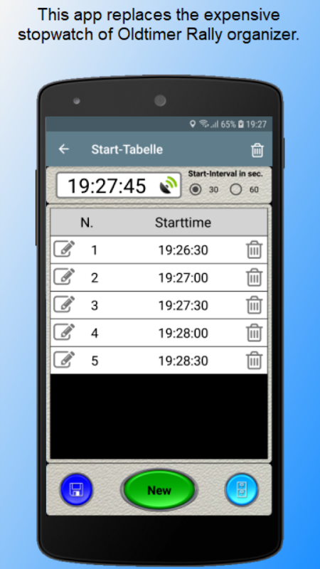 This app is a stopwatch for timekeeper of Oldtimer Rallye