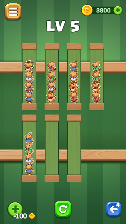 When all columns contain capybara of the same type, the game is over and the player passes the level.