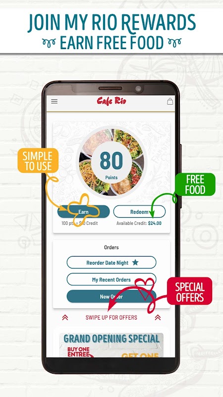 In addition to rewards, the Cafe Rio app gives you fast and easy access to mobile ordering, order status tracking, special offers, location information and more.